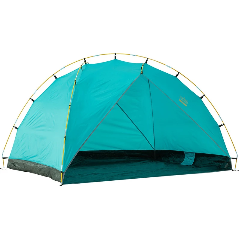 Mit dem Tonto Beach 3 Zelt von Grand Canyon kannst du dir eine kleine Burg an den Strand stellen, die dich vor Wind schützt und dir Schatten spendet.Das Strandzelt ist super einfach aufgebaut und wenn du die Klettverschlusstaschen mit Sand füllst, steht es auch bei einer kräftigen Meeresbrise stabil am Fleck. Dank hohem UV-Schutz bewahrt es dich vorm Sonnenbrand, gleichzeitig bietet es dir aber auch einen guten Nässeschutz, falls mal ein Schauer herunterkommt.Der rechteckigen Grundriss gibt dem Tonto Beach 3 Zelt viel Platz, damit ihr und euer Zeug darin unterkommt.