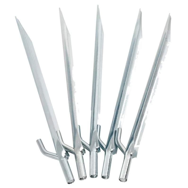 Mit den Steel Pegs Tirol bietet Meru die robuste Rundumlösung für jeden Untergrund. Aufgrund des geringen Gewichts eignen sich die Heringe aus feuerverzinktem Aluminium hervorragend fürs Trekken. Enthalten sind jeweils 5 Heringe.