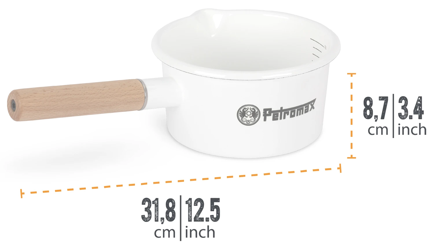 Der Petromax Stieltopf aus weiß-emailliertem Stahl ist besonders leichtgewichtig und gleichzeitig robust. Das macht ihn zum idealen Kochgeschirr für unterwegs beim Camping und anderen Outdoor-Aktivitäten.