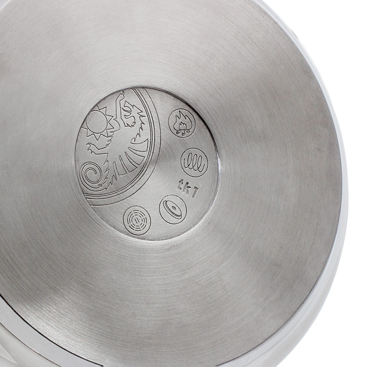 Der Teekessel ist aus hochwertigem Edelstahl gefertigt und zeichnet sich durch eine lange Haltbarkeit aus. Der mehrschichtige Boden sorgt für eine optimale Hitzeverteilung über die ganze Fläche, so dass das Wasser schnell und effizient zum Kochen gebracht wird. Und mit der langgezogenen Tülle lässt sich das Wasser komfortabel ausgießen, ohne dass ein Tropfen verloren geht.
