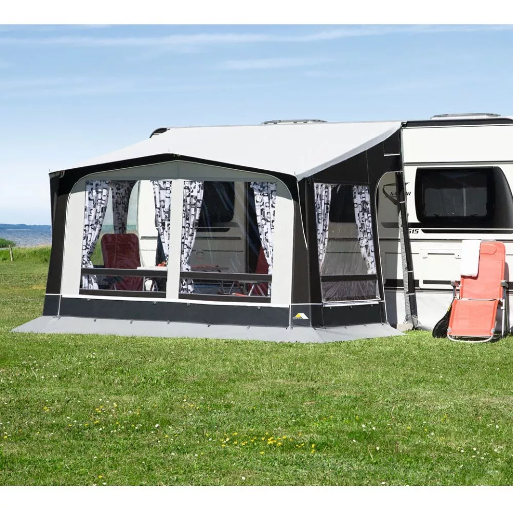 Die Eleganz und Souveränität unterstreicht die Klasse des DWT Wohnwagen-Vorzeltes Jazz. Ein robustes Dach, das atmungsaktive Gewebe in den Wänden zusammen mit den besonderen Lüftungsfenstern in den Seiten gewähren einen Komfort, den du an deinen Reisezielen oder am saisonalen Standort nicht missen möchtest. Einfach überzeugend.